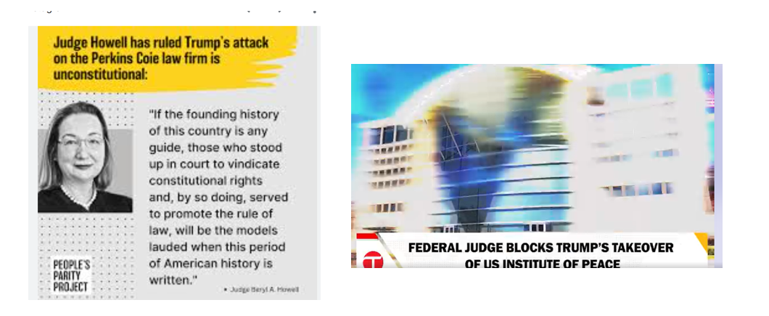 Howell earlier this month temporarily blocked the Trump administration from enforcing portions of the executive order targeting the law firm Perkins Coie. The punishment arises from the firm's hiring of Fusion GPS, a research and intelligence firm, to conduct opposition research on then-candidate Trump's potential ties to Russia.